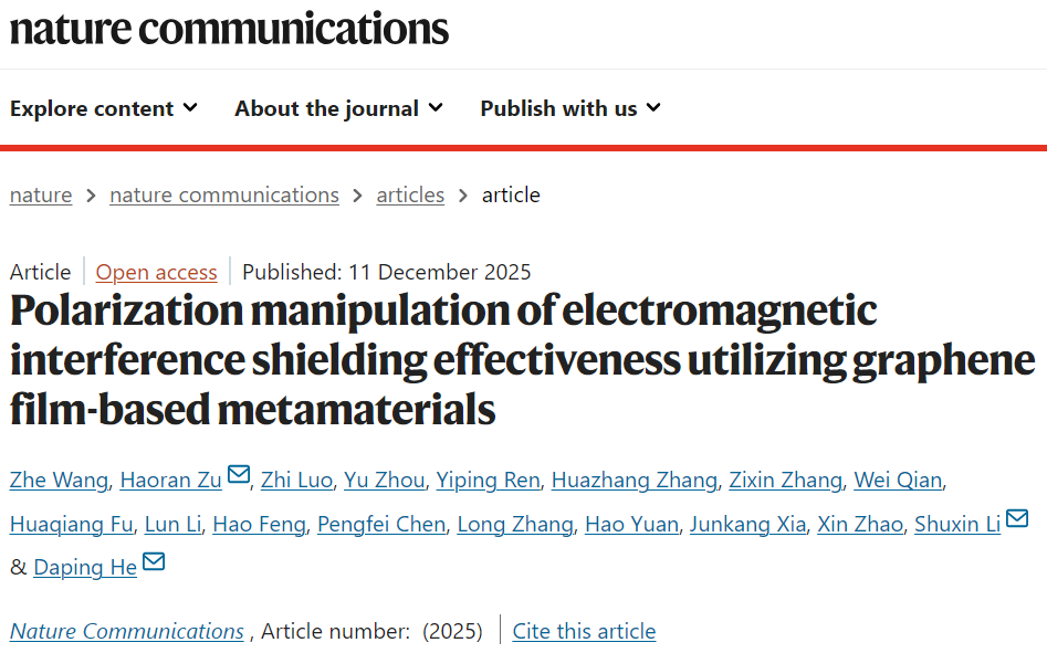 Wang, Z., Zu, H., Luo, Z. et al. Polarization manipulation of electromagnetic interference shielding effectiveness utilizing graphene film-based metamaterials. Nat Commun (2025).