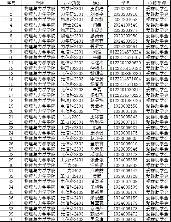 现将拟初评“爱群助学金”的学生名单予以公示: