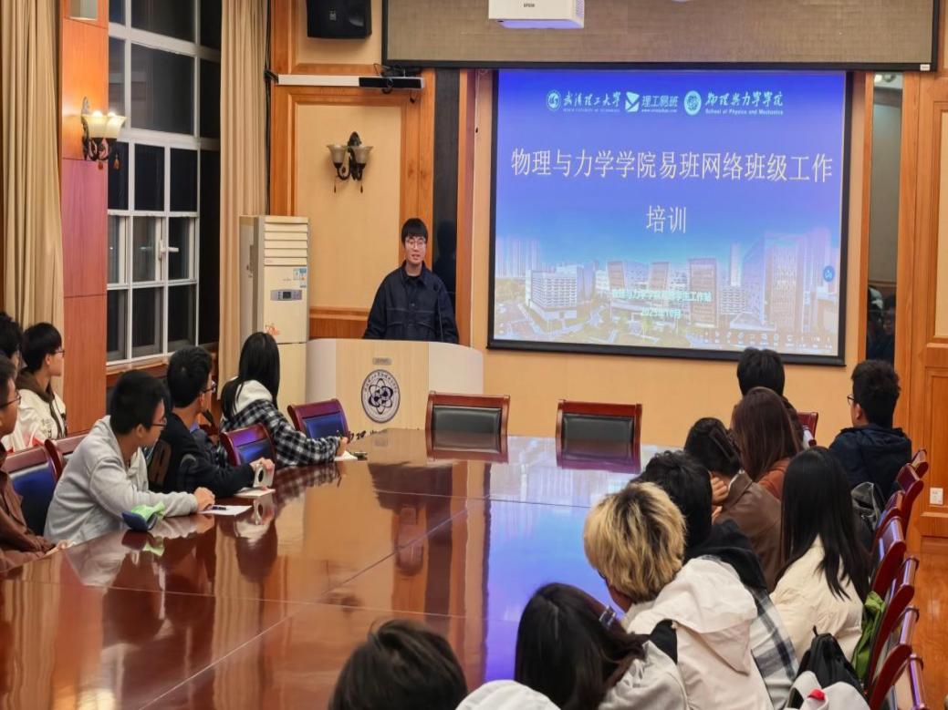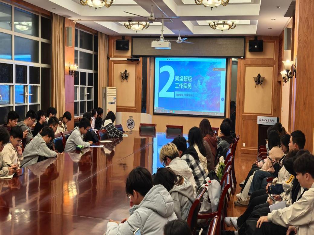 发布时间:2025-10-24为提升学院班集体建设水平,规范网络班级工作流程,10月21日晚,必赢3003no1线路检测中心易班学生工作站于理苑楼304会议室开展网络班级骨干专题培训。本次培训由学院网络班级负责人王子鹏主持,院易班指导老师刘杨、新生辅导员沈求峰出席,学院各年级网络班长、通讯员、网络班级骨干参与。