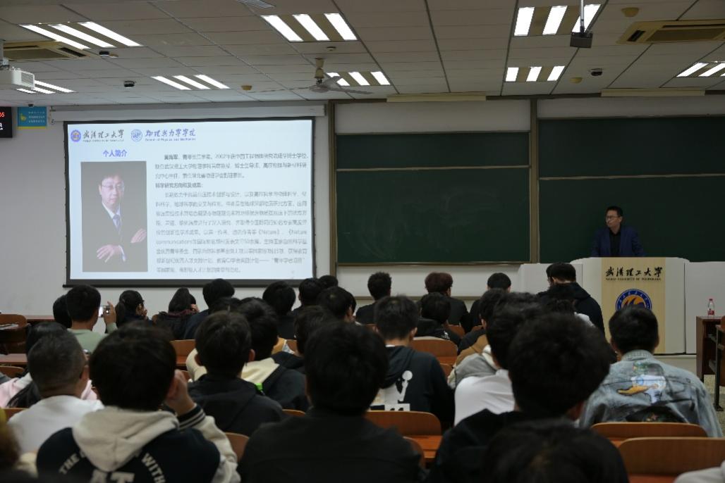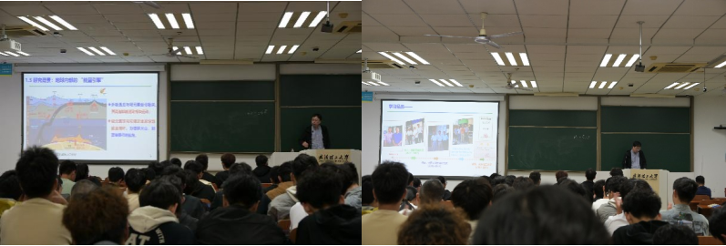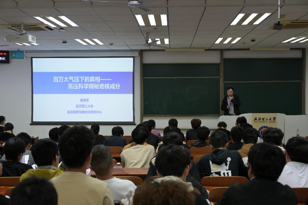 黄海军教授的讲座主题为“百万大气压下的真相——高压科学揭秘地核成分”。他从地球科学的基础知识科普入手,由浅入深讲述了自己的研究背景。在核心内容分享中,黄教授深入剖析了高压科学研究面临的多重挑战:从超高压实验设备的技术瓶颈,到极端条件下物质性质探测的精度难题,再到跨学科知识融合的复杂要求。随后,他结合自身求学与科研经历,向在场师生送上殷切寄语:科研之路从无捷径,需要保持勤奋钻研的态度,主动向优秀导师请教,找准研究方向并持之以恒,才能在学术道路上稳步前行。他鼓励同学们既要夯实专业基础,也要敢于挑战未知,在追求科学真理的过程中实现个人价值与学术理想。