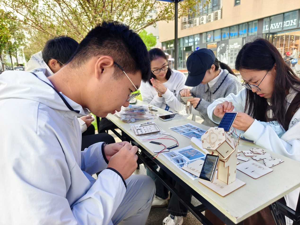 在人造卫星模型制作过程中,“两弹一星”精神潜移默化地融入同学们的思想,落实到他们的实操行动中。参与者相互协作,开启了卫星模型的组装之旅。从结构框架的构思到卫星模型的搭建,每一步都需要耐心、细致与团队合作。这一过程,不仅是对人造卫星基本构造的认知学习,更让同学们感受到了源自内心、面向未来的科学探索激情。