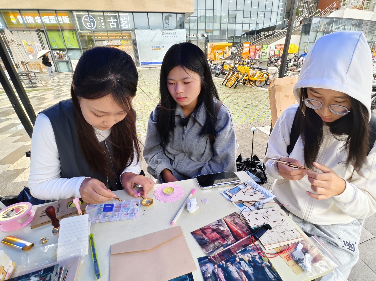 与此同时,火漆印章的制作也在如火如荼地进行。在志愿者的引导下,同学们踊跃参与知识问答,回顾了第一颗原子弹、导弹、氢弹与人造卫星的历史性研发历程,内心油然而生自豪与骄傲之情。火漆这一古老的信物封缄方式,象征着承诺、责任与印记。参与者精心挑选与“两弹一星”主题相关的图案模具,在加热、滴落、按压的过程中,将对科研报国精神的领悟凝固成一枚枚独具匠心的火漆印章。通过这种温暖而庄重的方式,大家深刻感悟“两弹一星”精神的内核。
