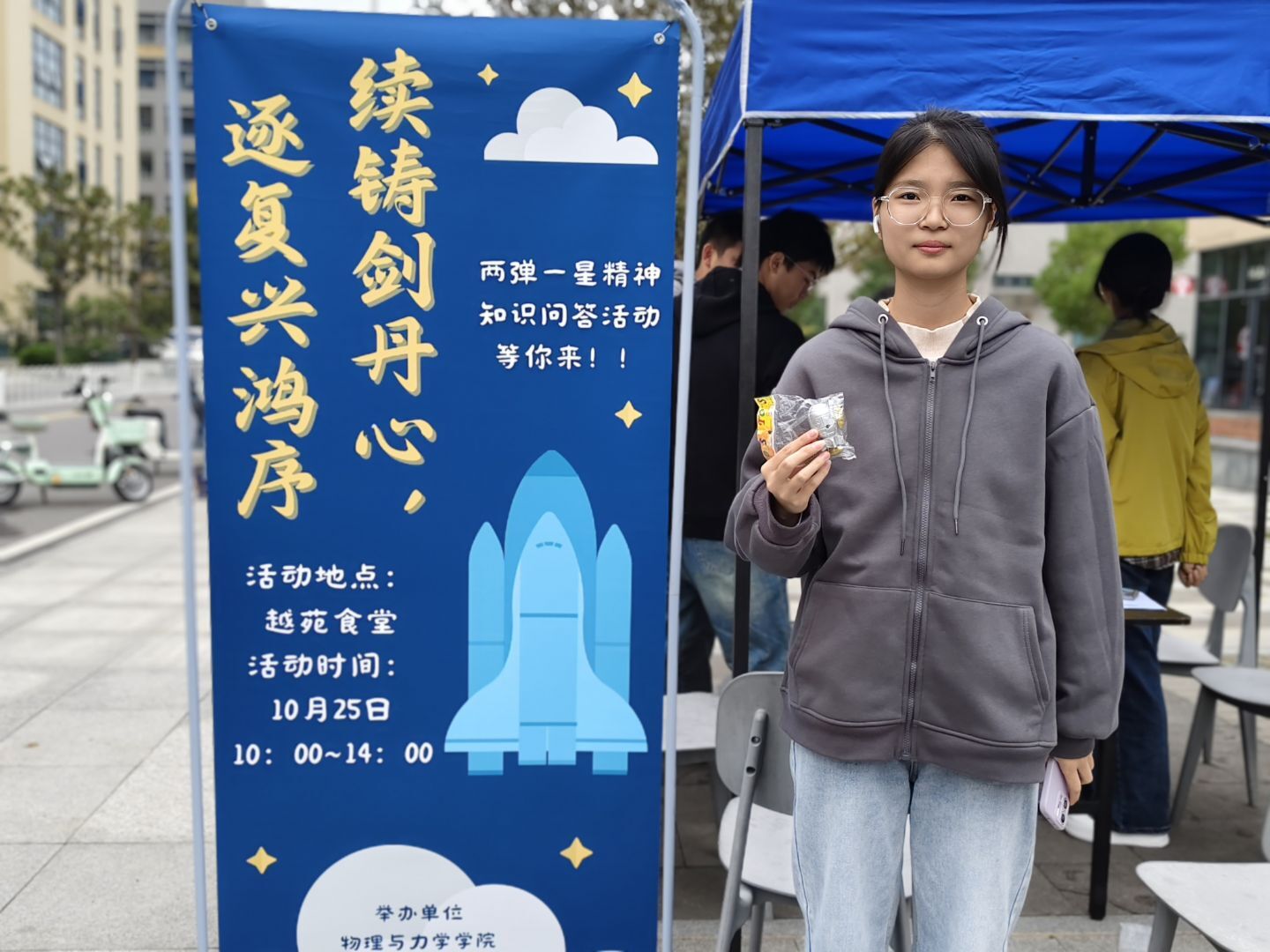 此次活动不仅为同学们在繁忙的学业中增添了乐趣,更为传承和弘扬两弹一星精神搭建了交流互动的平台,它既是一次成功的爱国主义教育活动,更是一堂生动的“大思政课”。志愿者们创新宣传形式,让红色基因在寓教于乐中深植青年学子心田。活动虽已落幕,但两弹一星精神的火炬已然传递。必赢线路检测3003守望志愿服务队也将在后续的宣传活动中继续秉持砥砺强国之志,为“两弹一星”精神的传承与弘扬贡献更多智慧和力量。