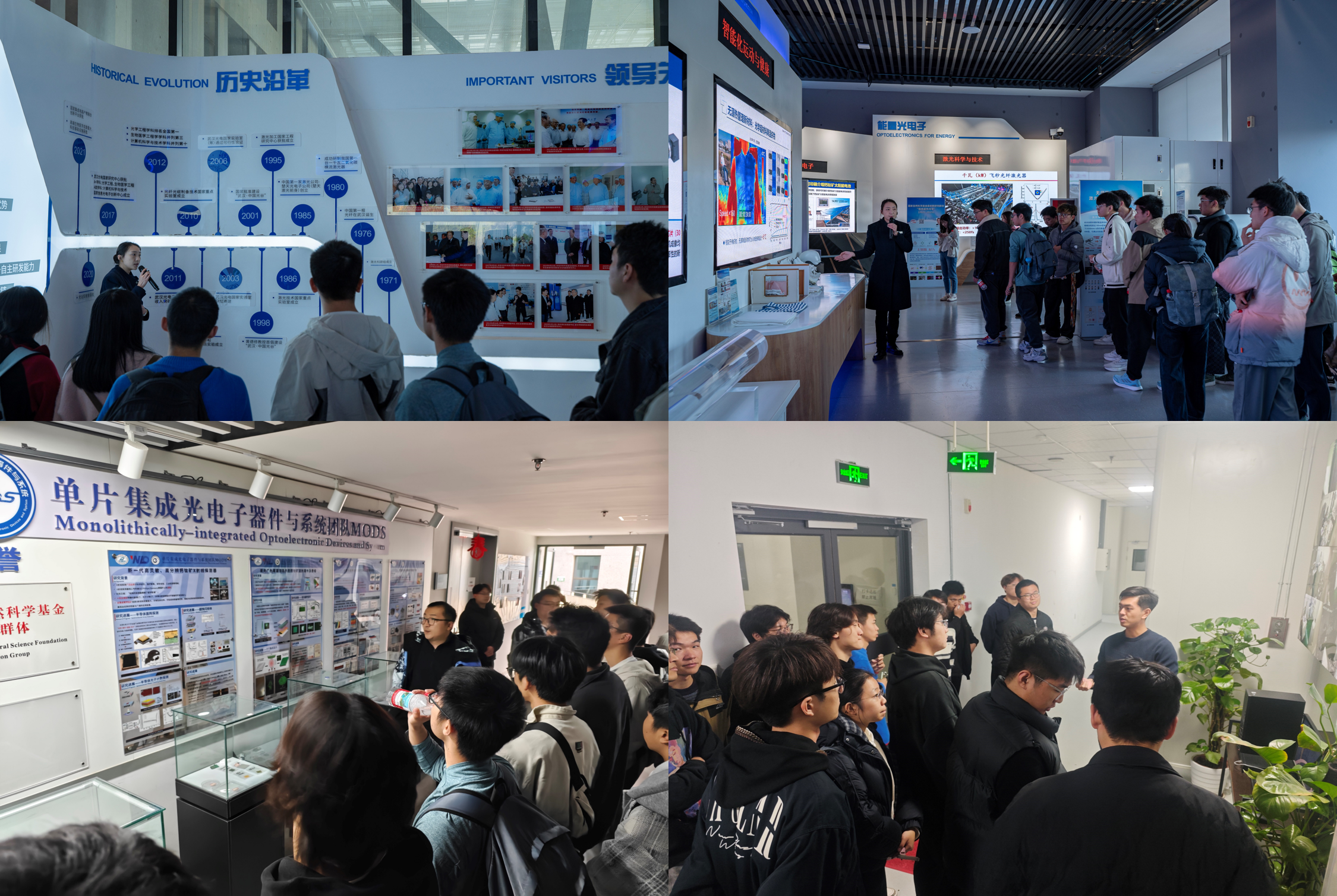 活动当日,我们师生代表先后走进武汉光电国家研究中心展厅、MODS单片集成光电子器件实验室、激光极端制造实验室及多模态智能激光感知创新团队实验室等核心区域,系统参观了研究中心在信息光电子、生命光电子、能量光电子等领域的发展历程与重大突破,并近距离观摩了先进的科研设备与实验操作流程,与实验室工作人员围绕研究内容、应用场景及行业发展趋势展开了深入交流。值得一提的是,此次参与讲解与交流的研究生成员均为我校毕业校友。校友们以亲身经历分享了在科研道路上的成长心得、学术探索中的经验技巧,以及对光电领域未来发展的独到见解,现场交流氛围热烈而融洽。